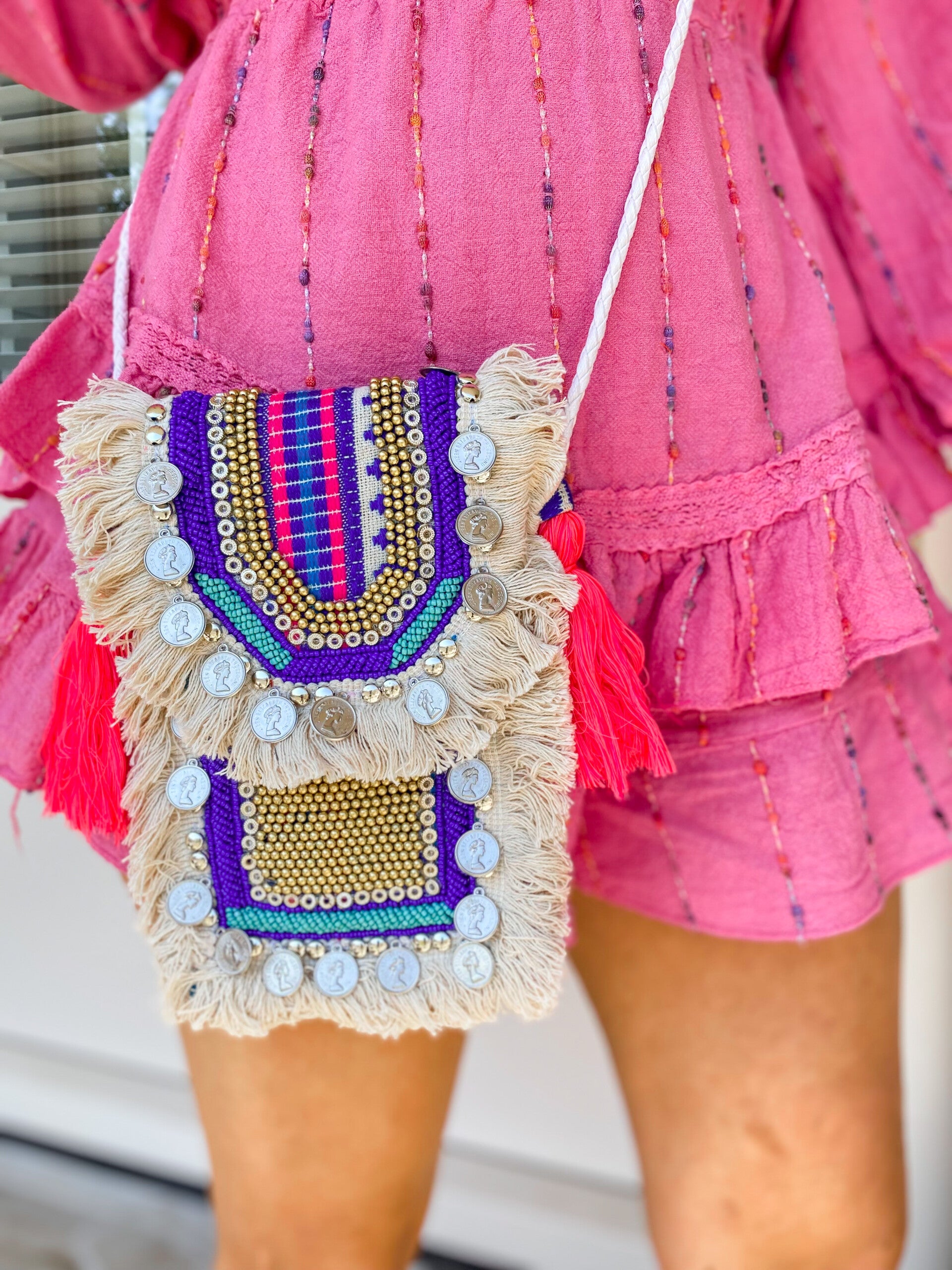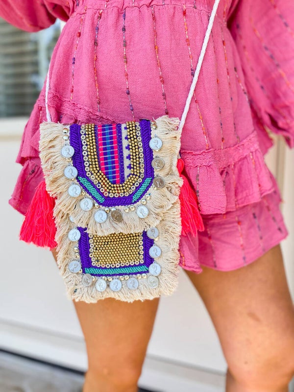 Deze onwijs leuke Ibiza festival telefoon tas word je toch helemaal verliefd op! Love it! In de kleur donker blauw